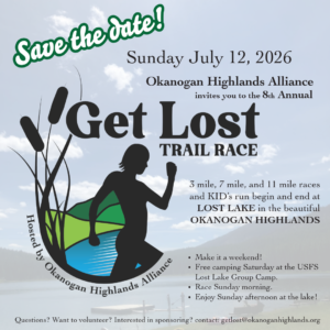This year’s Get Lost Trail Race was a fabulous, family fun event,” said Tia Wold, OHA board member and Get Lost Race Director. Sarah Kliegman, OHA co-director adds, “OHA’s Get Lost Race has become a summer tradition for lots of people, businesses, and organizations who come together to participate in the festivities as racers, volunteers, and sponsors. Our hearts are full when we see the excitement for this event and for the beautiful Okanogan Highlands grow over the years!”